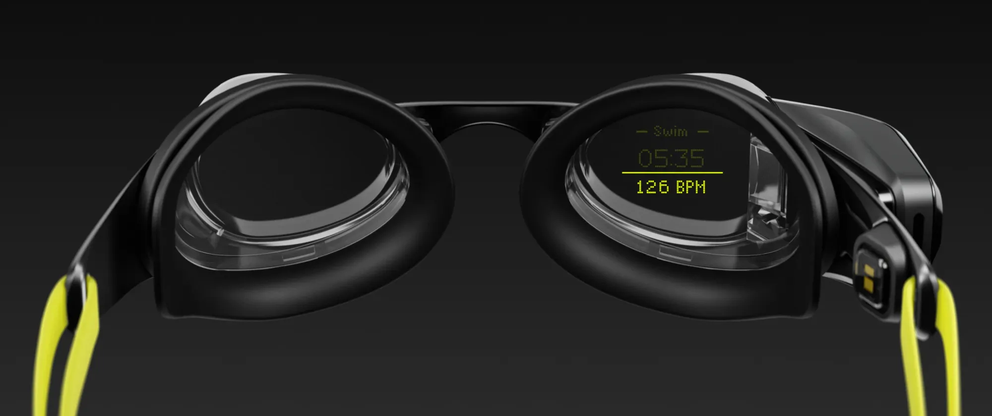 這副看似簡單的泳鏡,內建光學顯示模組,讓使用者在划水、轉身、換氣過程中,即時掌握配速、總時間、心率等關鍵數據。它讓原本只能依賴感覺的泳姿節奏,轉變為眼前清晰可讀的數據資訊,以全新方式重塑游泳回饋體驗。對於長期在游泳池中訓練的人來說,這代表著一種全新感官體驗的建立,不再依賴教練口頭指示或事後數據分析,而是在當下與自己的動作、數據和呼吸對話。